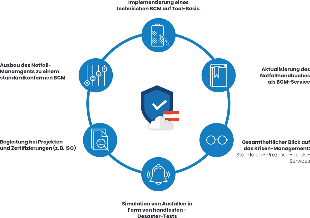 Wir beraten Sie unverbindlich, setzen gemeinsam den BCM-Prozess auf und betreiben diese für Sie in Ihrem Sinne auch als Managed Service.